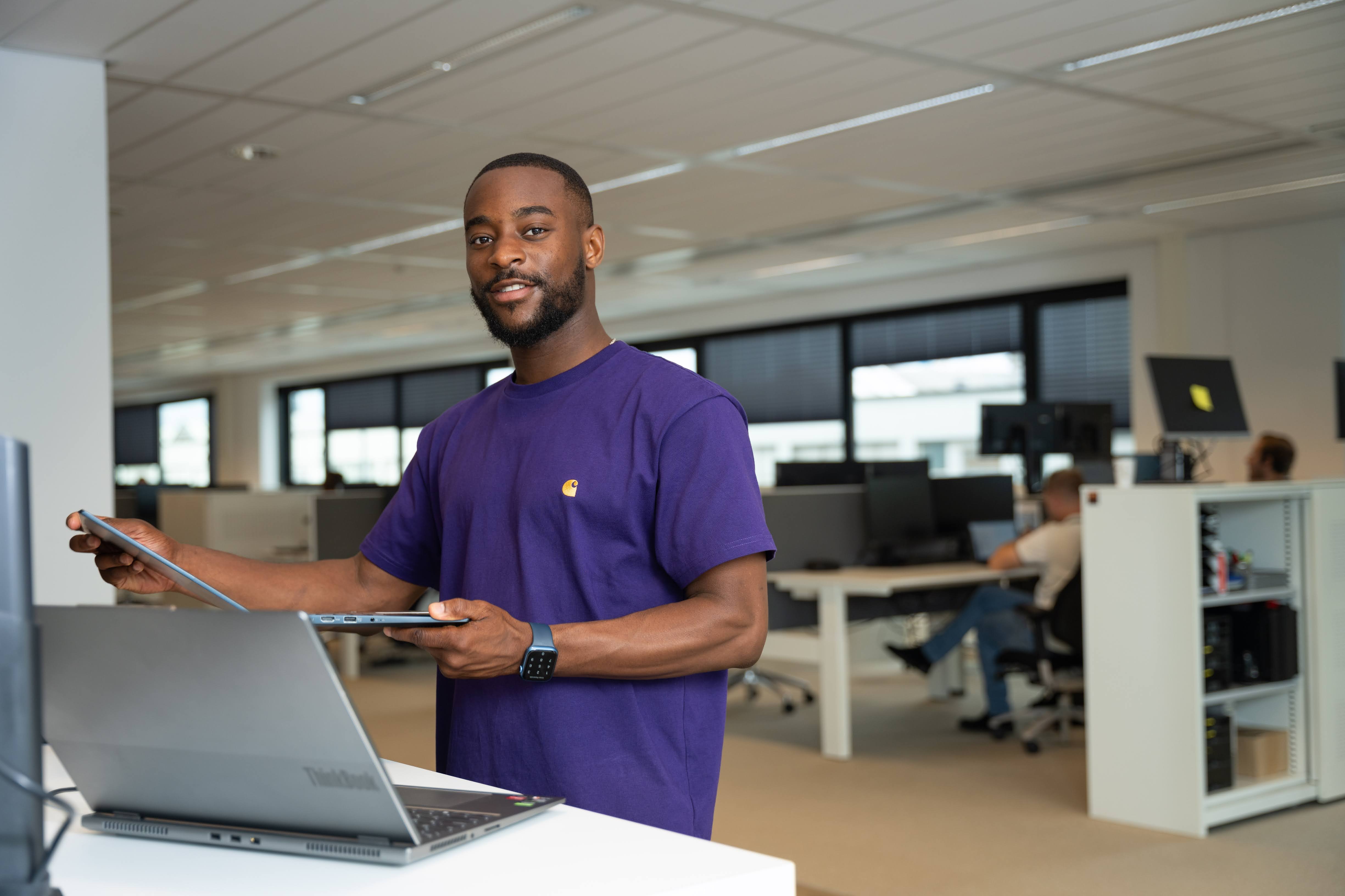 "Mijn naam is Nigell Vyent en ik werk in de Rotterdamse haven als IT-Field Engineer. Ik ben verantwoordelijk voor de hardware en technische systemen binnen ons bedrijf. Denk hierbij aan het ondersteunen van mijn collega's wereldwijd met IT-problemen, maar ook aan het installeren en onderhouden van systemen op verschillende locaties. Als Field Engineer ben ik letterlijk het gezicht van onze IT-afdeling; ik los problemen op en zorg ervoor dat onze IT-infrastructuur soepel blijft draaien, zowel lokaal als internationaal."